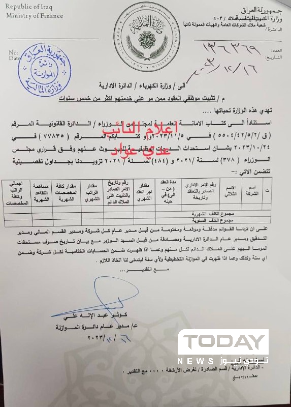 المالية تقرر تثبيت عقود الكهرباء ممن لديه خدمة أكثر من 5 سنوات