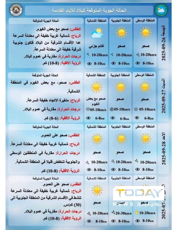 طقس العراق .. أجواء صحوة وانخفاض طفيف بالحرارة