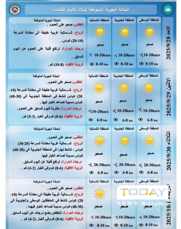 تعرف على تفاصيل طقس العراق للأيام المقبلة