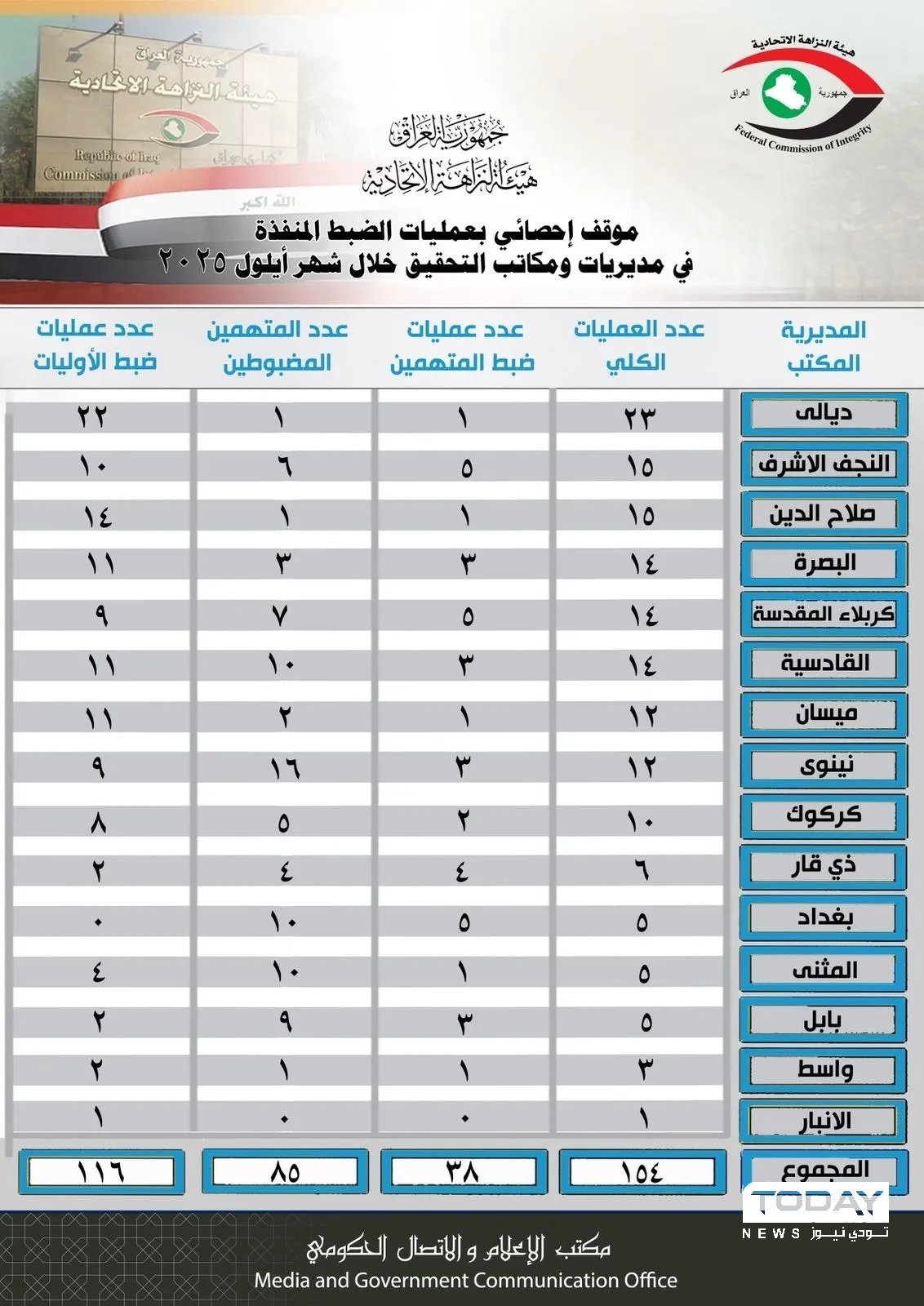 النزاهة: 22 أمر قبض بحق ذوي الدرجات الخاصة خلال أيلول الماضي