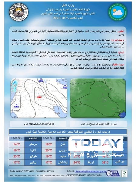 طقس العراق .. اجواء معتدلة مع انخفاض تدريجي لدرجات الحرارة