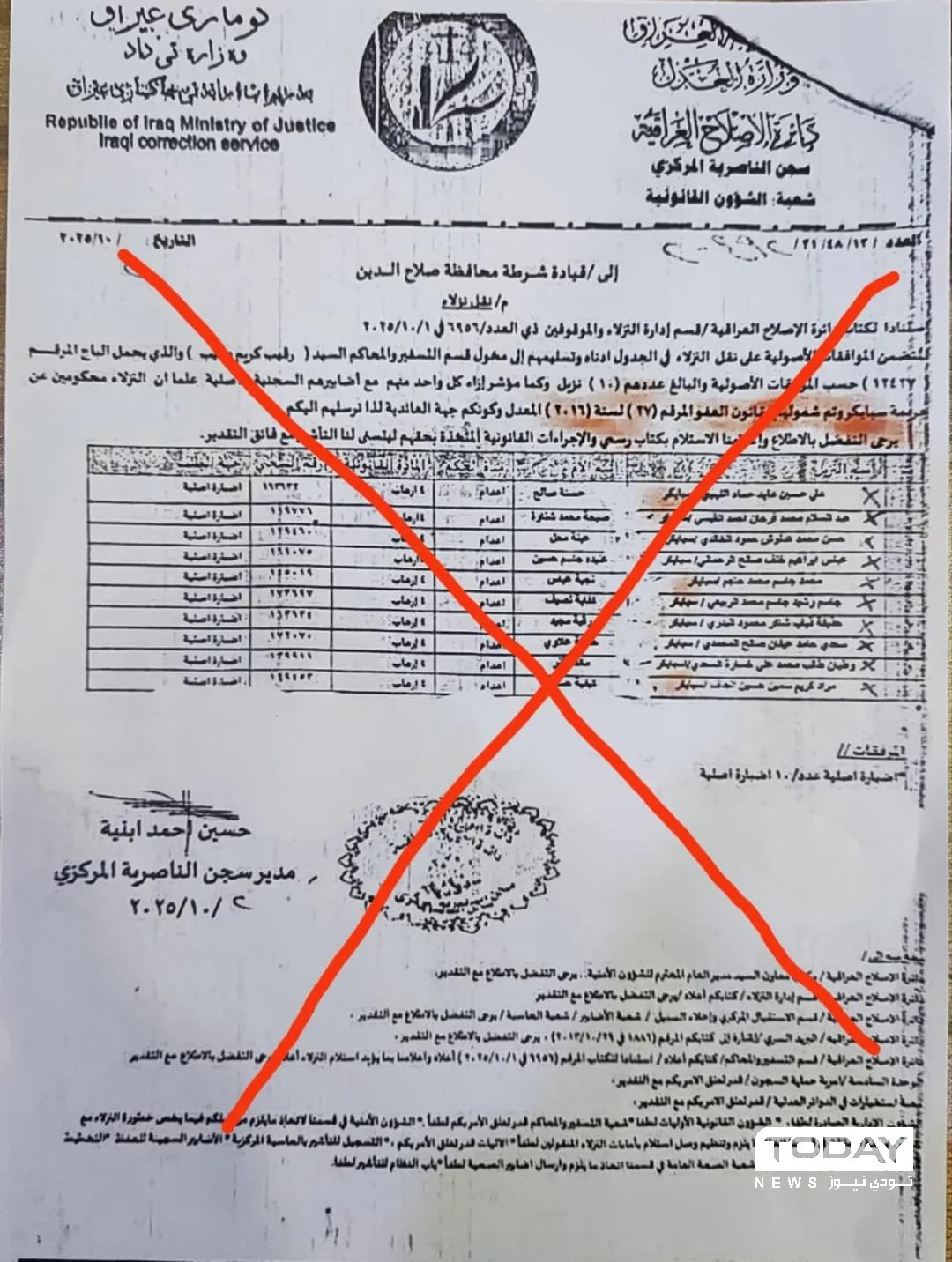 وأكد أن "الوثيقة مزوّرة، وتمت إضافة فقرتي محكومين بجريمة سبايكر وشمولهم بقانون العفو إليها، وهي لا تمتّ بصلة لأي من المخاطبات الرسمية الصادرة عن الإدارة".