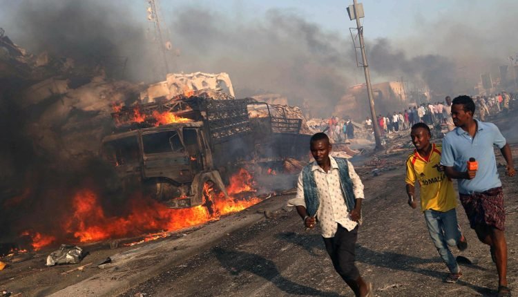 وفي مقاطع فيديو متداولة يمكن رؤية نيران ضخمة وسط تجمع العشرات.