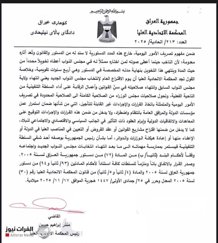 وثيقة .. القضاء ينهي صلاحية البرلمان ويحول الحكومة الى تصريف اعمال