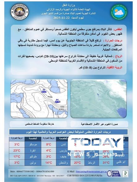 الانواء الجوية : انخفاض جديد بدرجات الحرارة بدءا من الغد