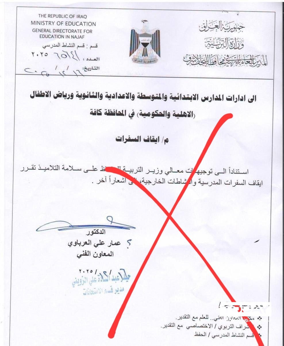 نفت وزارة التربية صحة الكتاب المتداول الذي يزعم إيقاف السفرات المدرسية، مؤكدة عدم صدوره عن أي جهة رسمية.