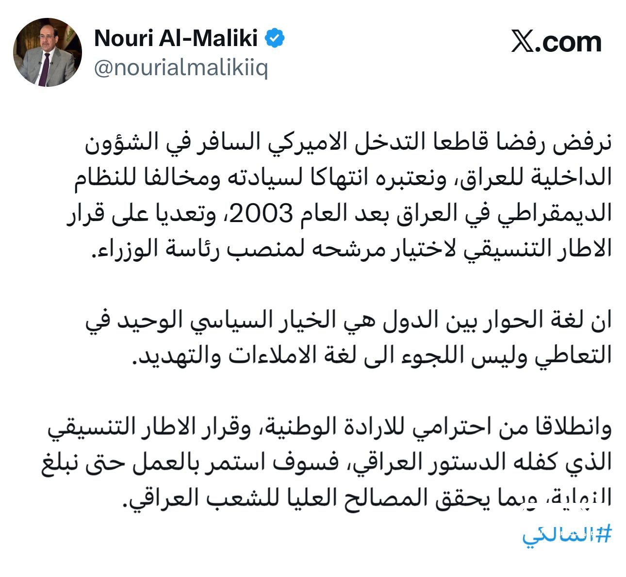 المالكي يرد على ترامب .. سأستمر بالعمل حتى النهاية