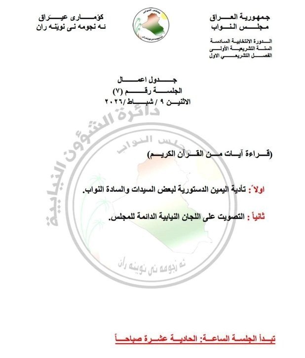 البرلمان ينشر جدول أعمال جلسة الإثنين المقبل
