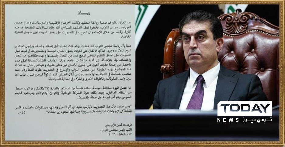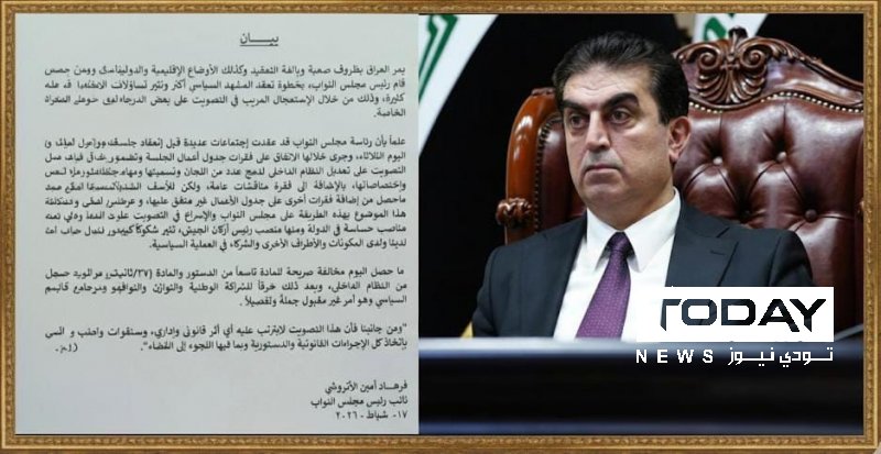 واختتم الأتروشي بيانه بالتأكيد على أن هذا التصويت "لا يترتب عليه أي أثر قانوني أو إداري"، معلناً التوجه لاتخاذ كافة الإجراءات القانونية والدستورية، بما في ذلك اللجوء إلى القضاء للطعن في هذه الخطوة.