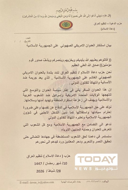 حزب دعاة الاسلام يستنكر العدوان الصهيوأمريكي على جمهورية ايران الإسلامية