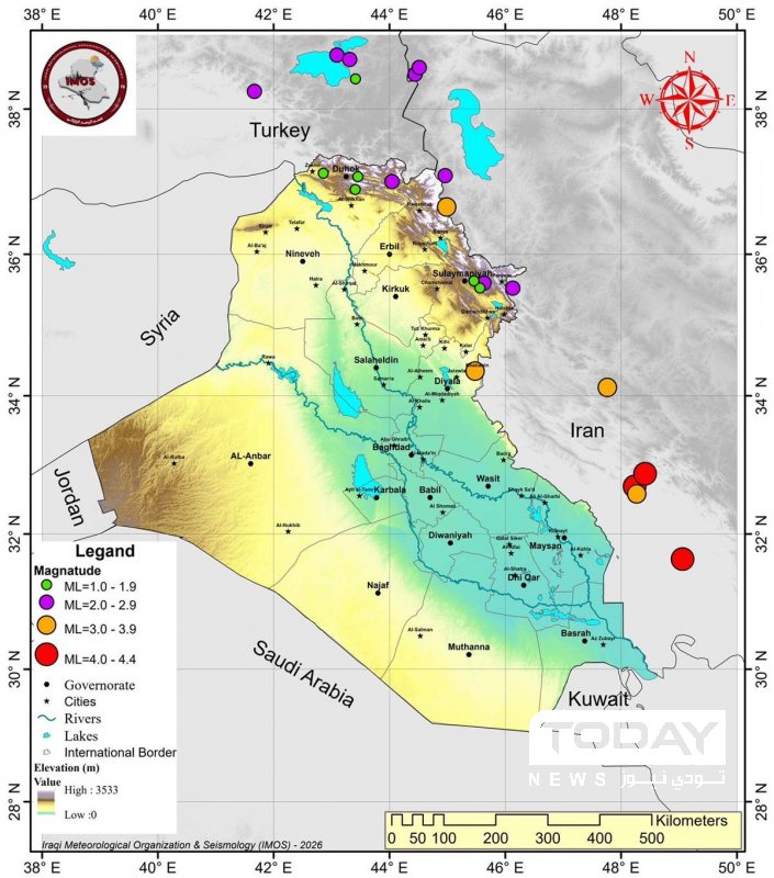 اعلنت هيئة الانواء الجوية، اليوم الاحد، عن تسجيل 9 هزات ارضية داخل العراق خلال اذار.