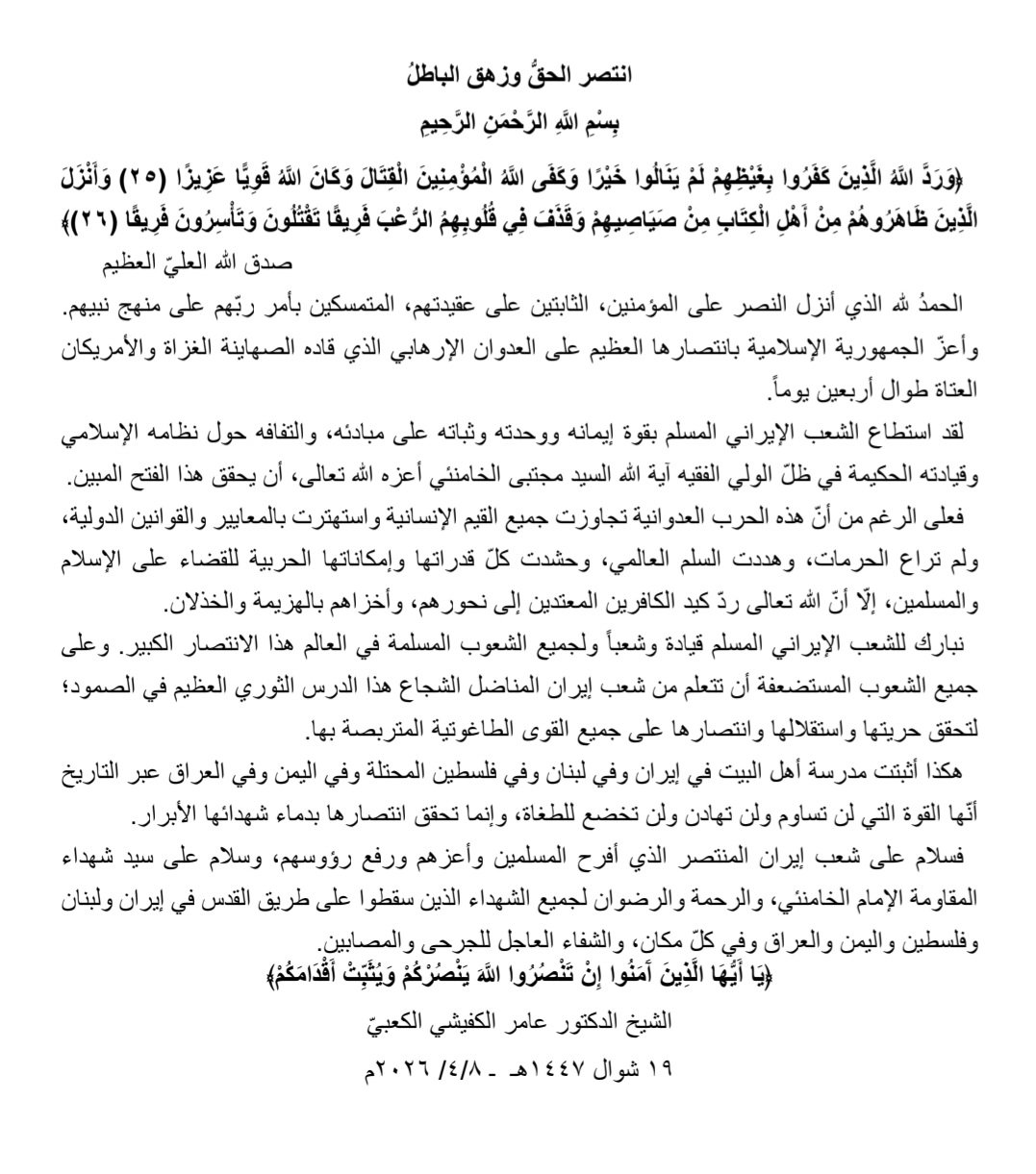 الشيخ الدكتور الكفيشي : الجمهورية الاسلامية انتصرت على الصهاينة والامريكان .. جسدت درس عظيم في الصمود