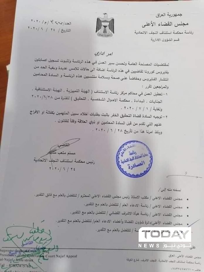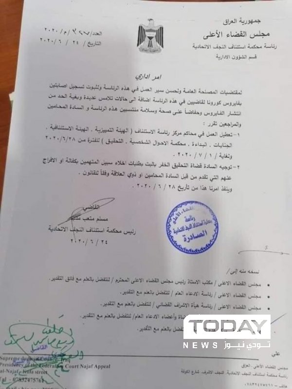 كورونا يتسبب باغلاق محكمة استئناف النجف بالكامل