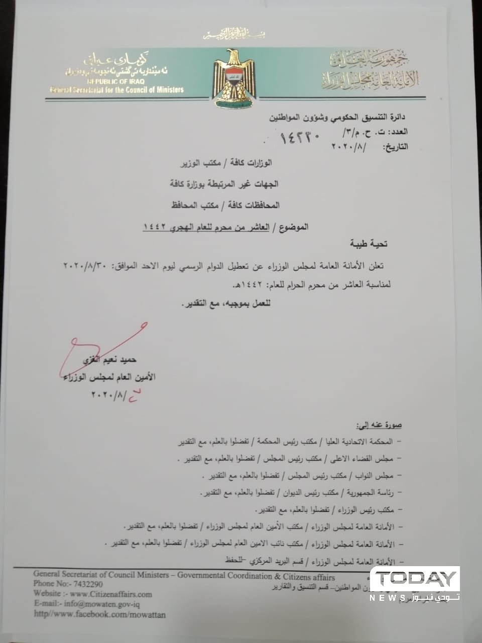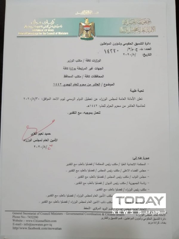 بالوثيقة.. أمانة مجلس الوزراء تعطل الدوام الرسمي يوم الأحد المقبل