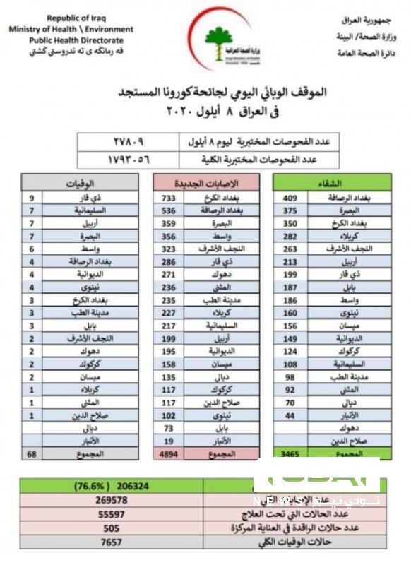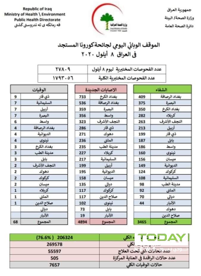 كورونا العراق.. 4894 إصابة و68 وفاة خلال يوم واحد