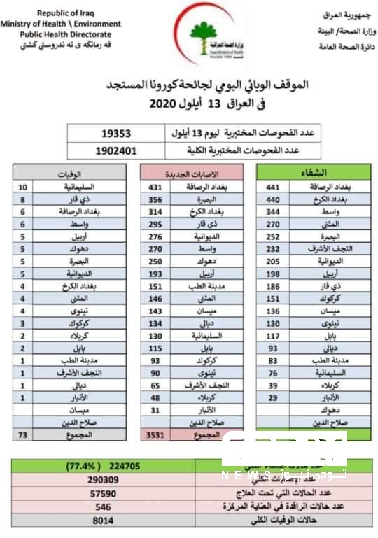 الصحة تسجل 3531 إصابة جديدة بكورونا و73 حالة وفاة