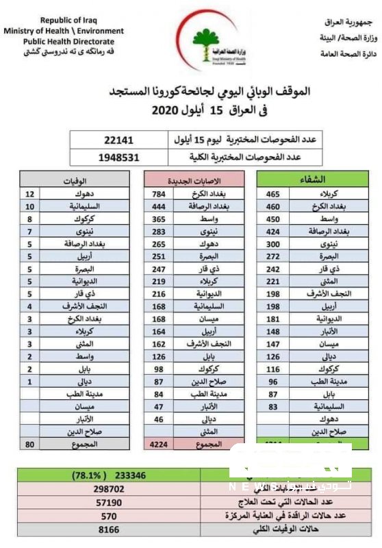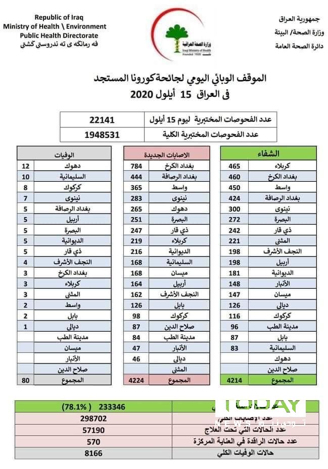 الصحة تسجل 4224 اصابة جديدة وشفاء 4214 حالة