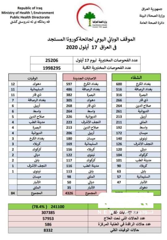 الصحة تسجل 4326 إصابة جديدة بفيروس كورونا و84 حالة وفاة
