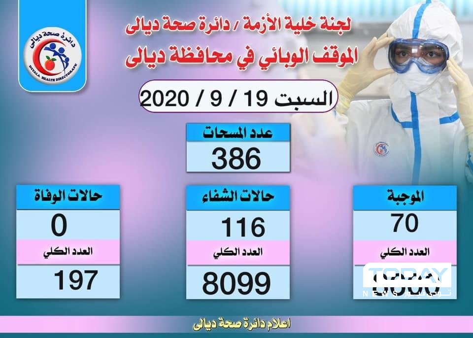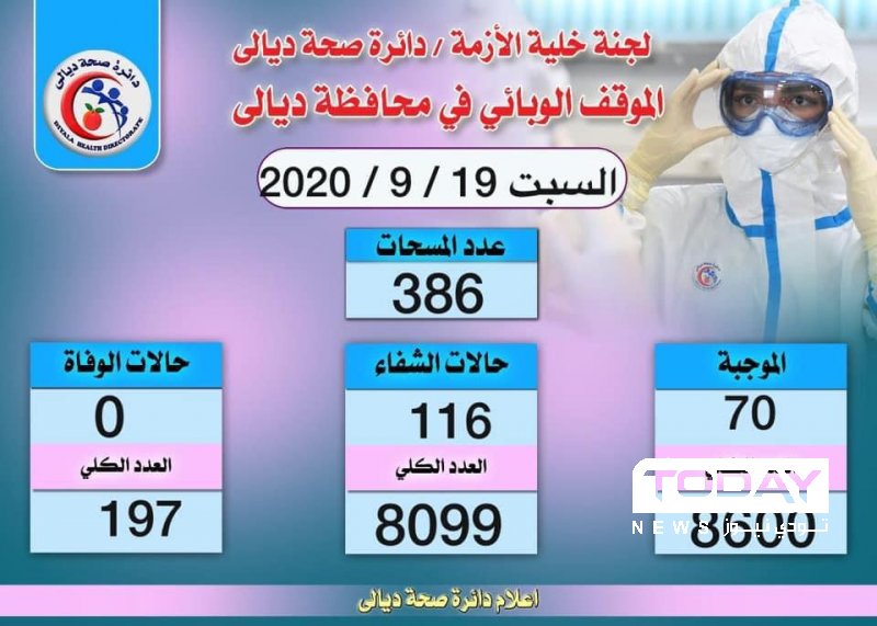 دون وفيات.. ديالى تسجل 70 إصابة بفيروس كورونا