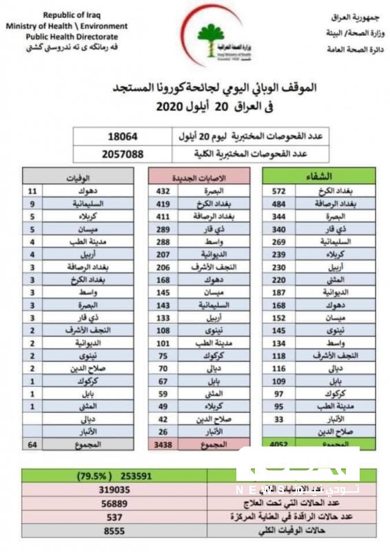 وزارة الصحة تسجل 3438 إصابة جديدة بفيروس كورونا https://t.me/inainaiq