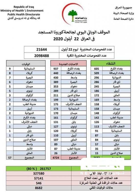 وزارة الصحة تسجل 4724 إصابة جديدة بفيروس كورونا