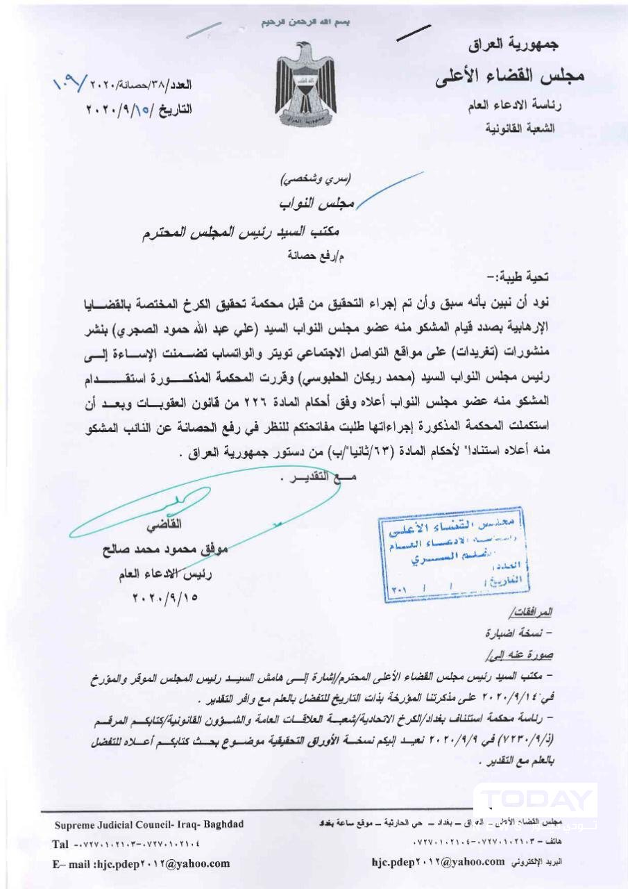 القضاء يخاطب رئيس البرلمان لرفع الحصانة عن النائب علي الصجري