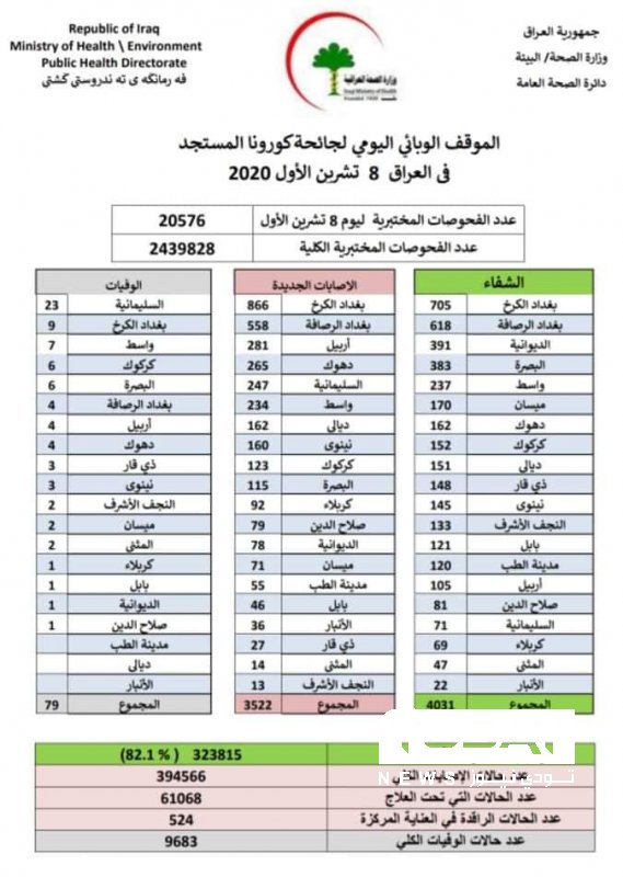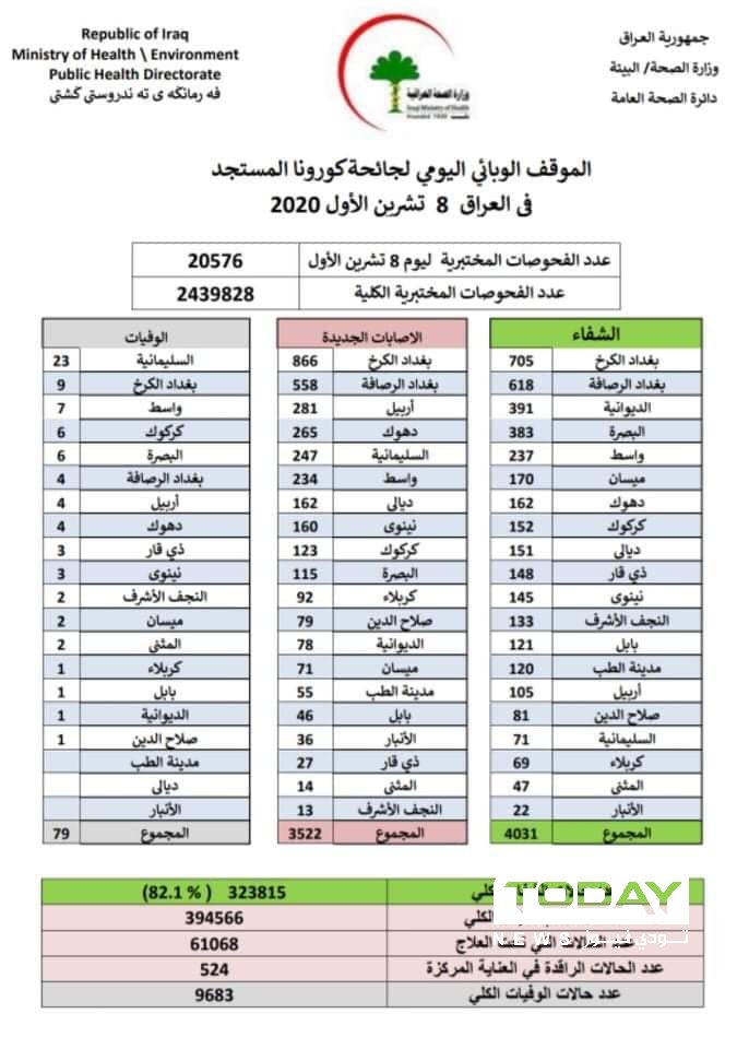 وزارة الصحة تسجل 3522 إصابة جديدة بفيروس كورونا