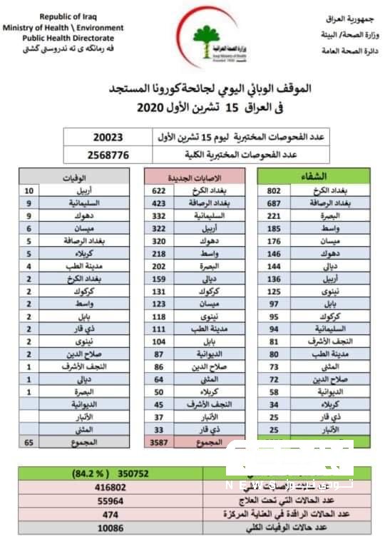 الصحة تسجل 3587 إصابة جديدة بفيروس كورونا