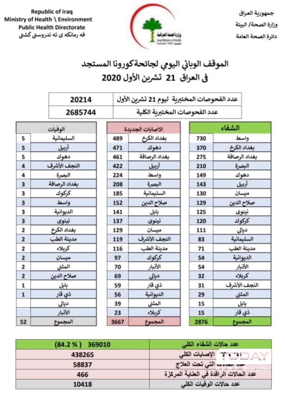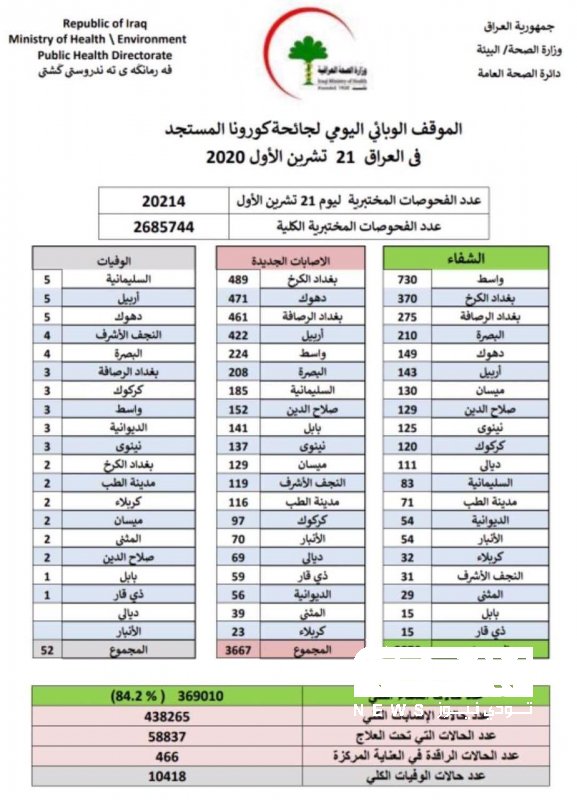 وزارة الصحة تسجل 3667 إصابة جديدة بفيروس كورونا