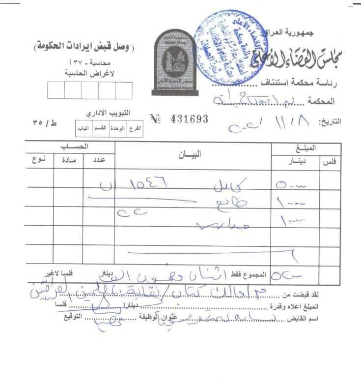ووفقاً لصورة عن وصل الاستلام أن القضاء قبل الدعوى للنظر فيها.
