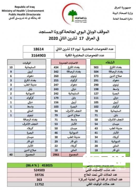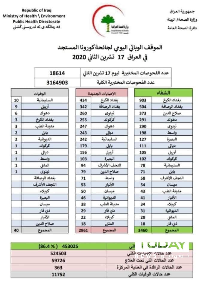 الصحة تسجل 2961 إصابة جديدة بفيروس كورونا مقابل 3460 حالة شفاء