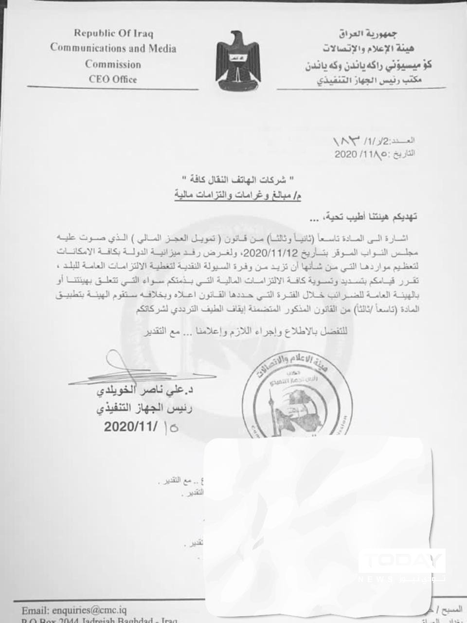هيئة الاعلام والاتصالات تطالب شركات الهاتف النقال “كافة” بتسديد ديونها بالسرعة الممكنة