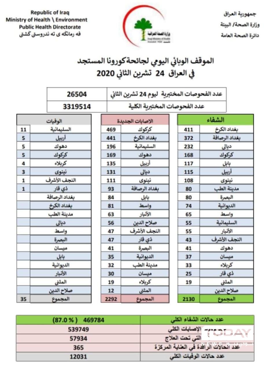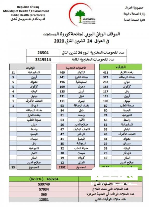 الصحة تسجل 2292 إصابة جديدة بفيروس كورونا مقابل 2130 حالة شفاء