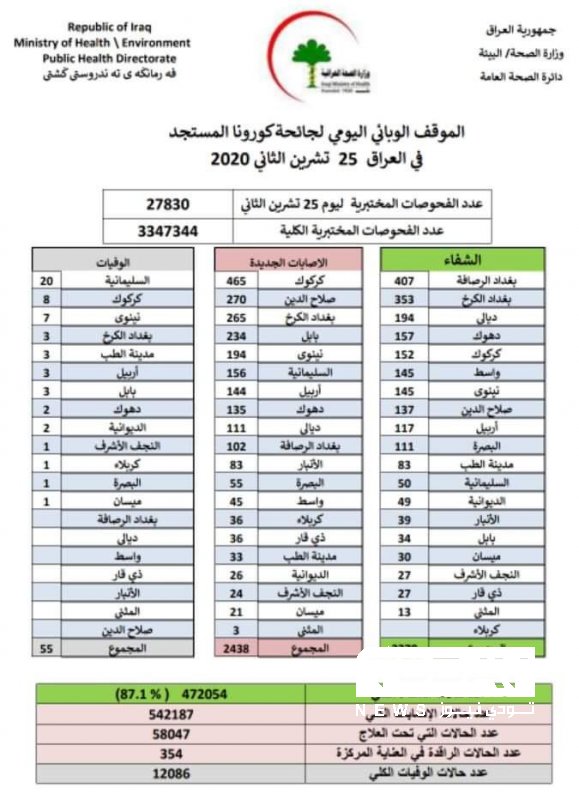الصحة تسجل 2438 إصابة جديدة بفيروس كورونا مقابل 2270 حالة شفاء