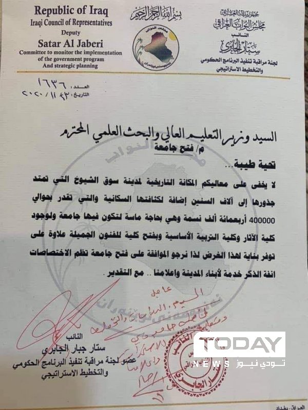 التعليم توافق على فتح جامعة في سوق الشيوخ "وثيقة"