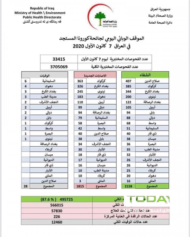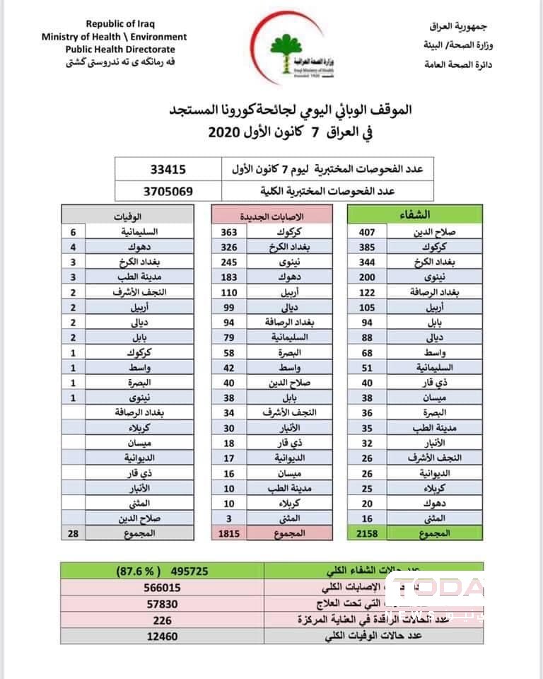 الصحة تسجل 1815 إصابة جديدة بفيروس كورونا مقابل 2158 حالة شفاء