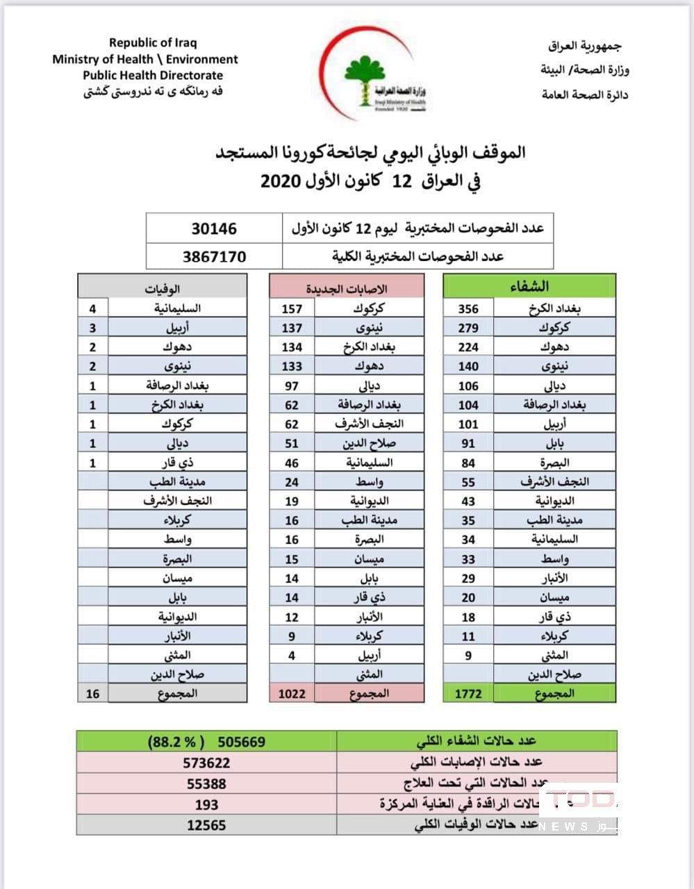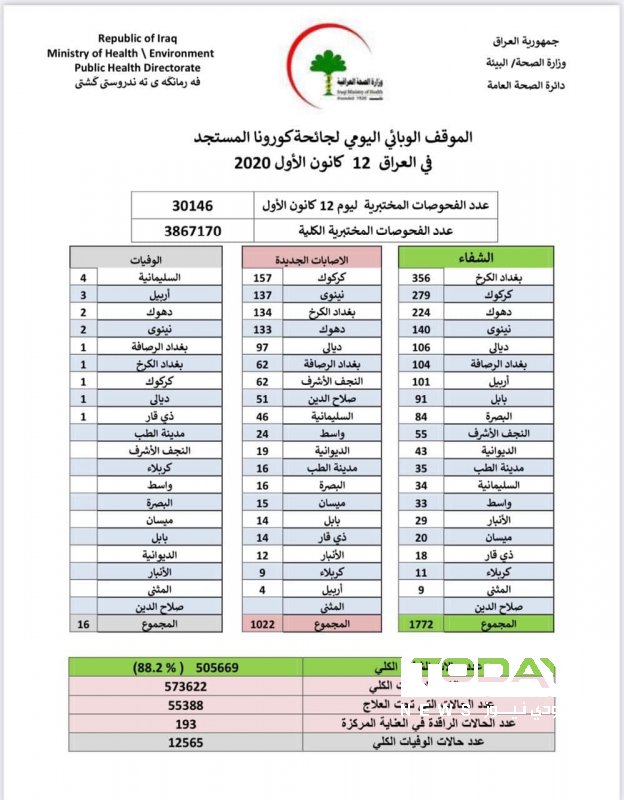الصحة تسجل 1022 إصابة جديدة بفيروس كورونا مقابل 1772 حالة شفاء