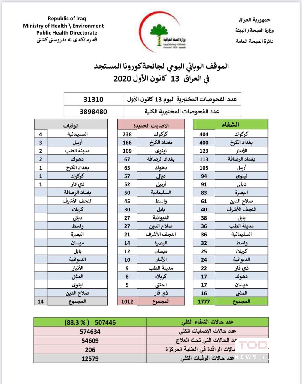 الصحة تسجل 1012 إصابة جديدة بفيروس كورونا مقابل 1777 حالة شفاء