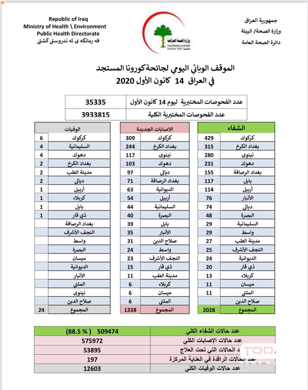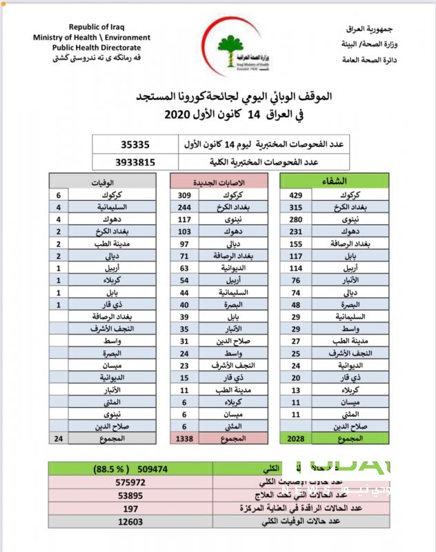 الصحة تسجل 1338 إصابة جديدة بفيروس كورونا مقابل 2028 حالة شفاء