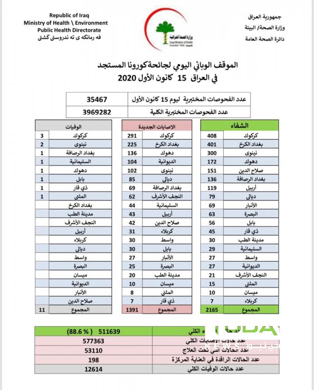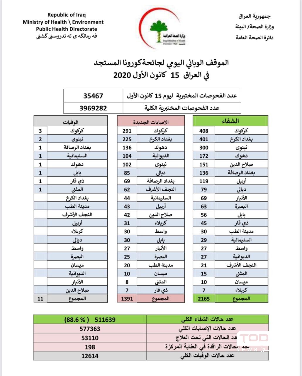 الصحة تسجل 1391 إصابة جديدة بفيروس كورونا مقابل 2165 حالة شفاء![]()