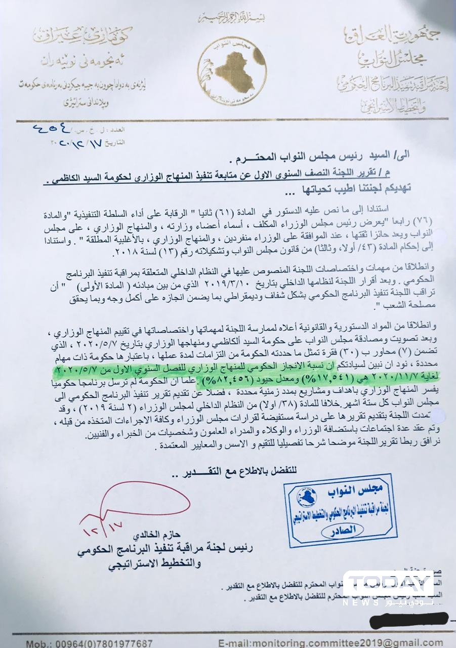 بالوثيقة .. مجلس النواب يقيم حكومة الكاظمي