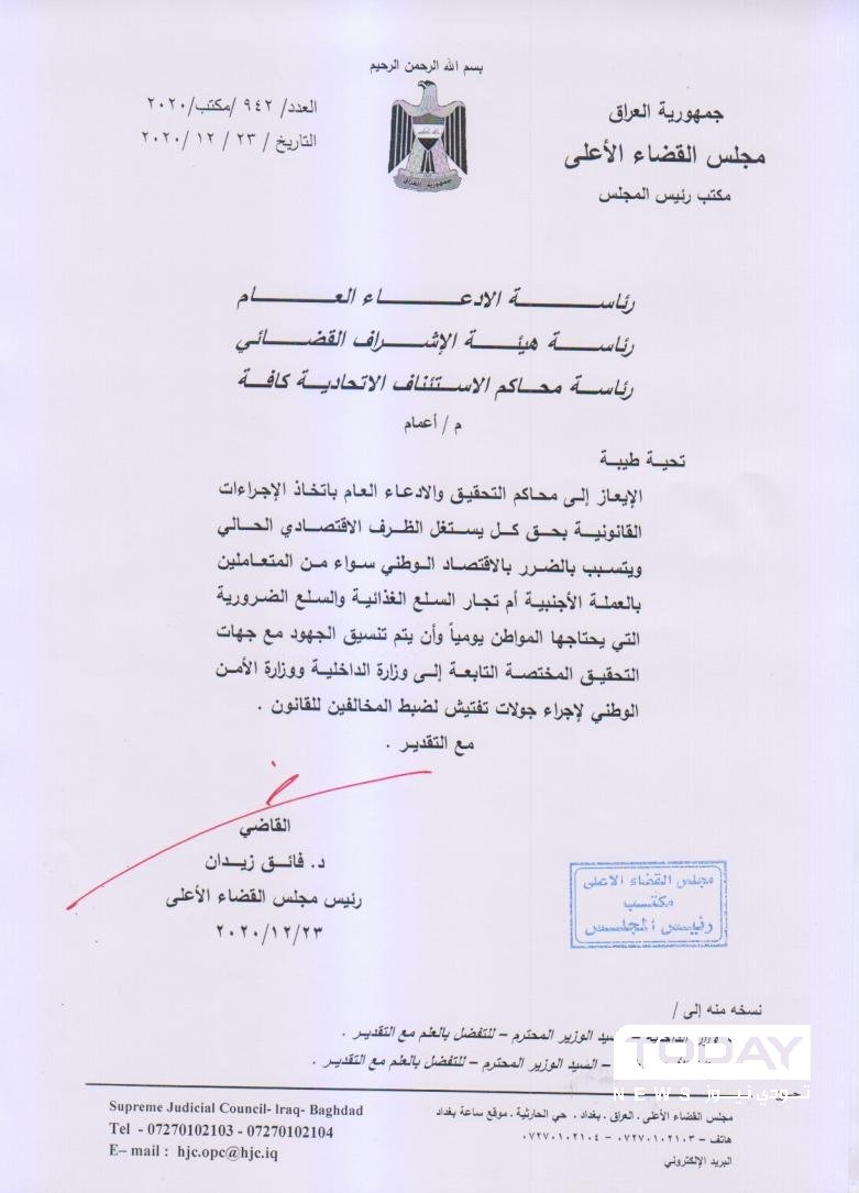 وثيقة.. القضاء يوجه باتخاذ إجراءات قانونية بحق من يستغل أزمة الدولار