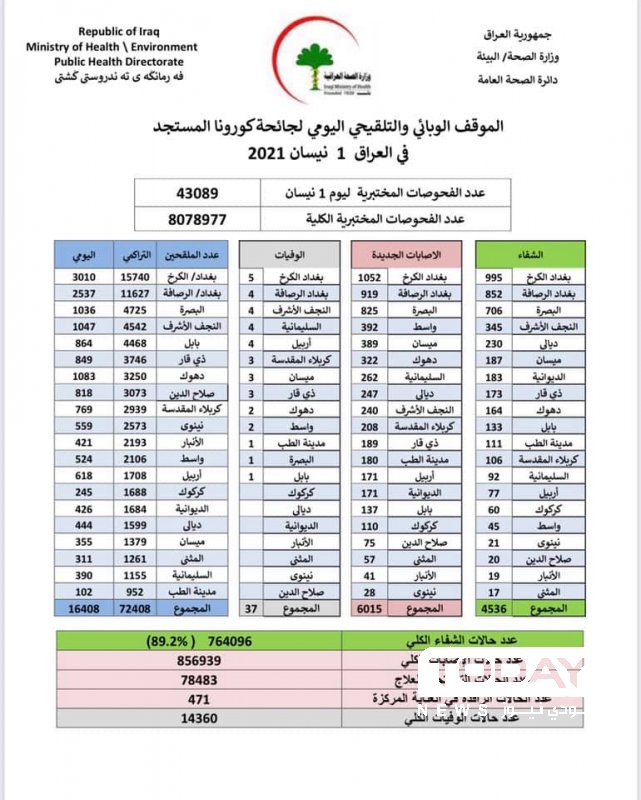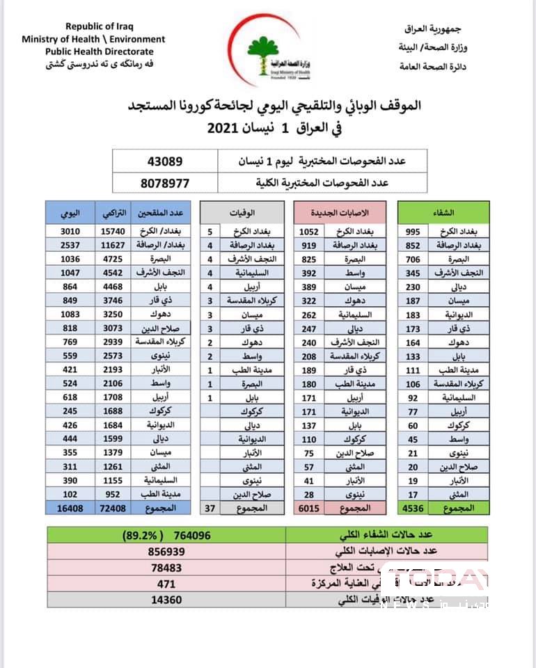 العراق يسجل اكثر من 6000 اصابة جديدة و37 وفاة