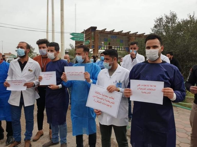 ودابت الكوادر الصحية على تنظيم وقفات احتجاجية بين فترة واخرى لرفع مطاليب تعتبرها مشروعة تتعلق باستحقاقات الاراضي لسكنية ورفع التسكين .