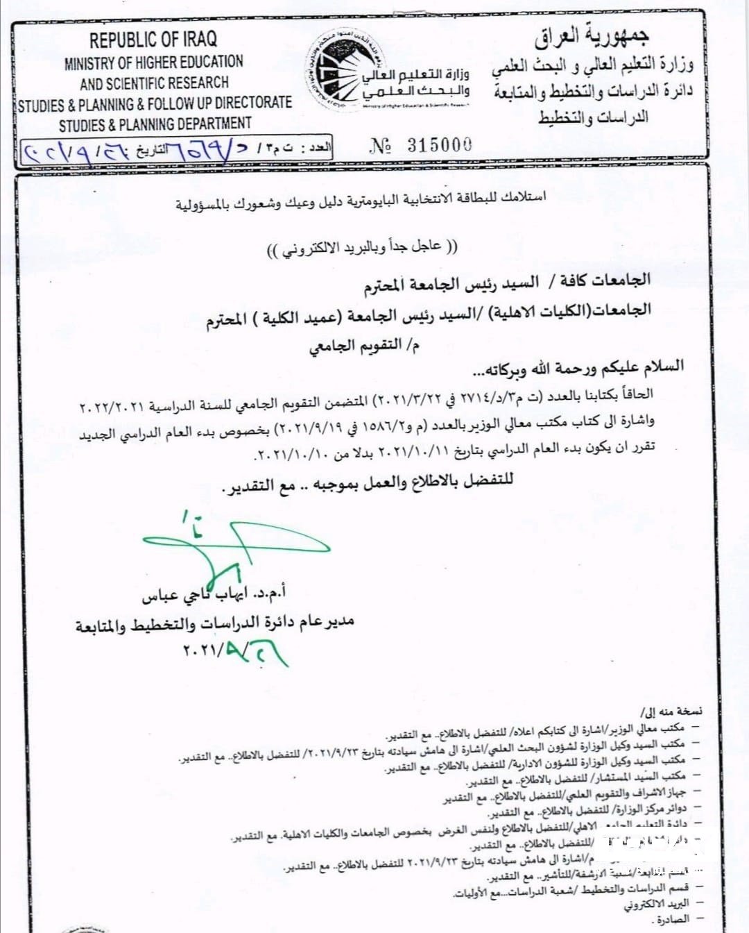 بالوثيقة : التعليم العالي تحدد موعد بدء العام الدراسي الجديد.