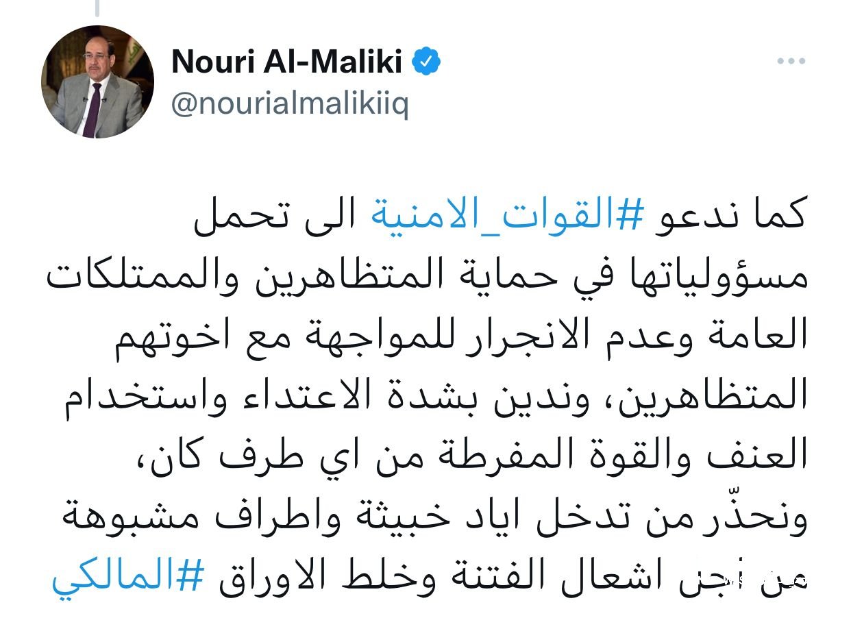 وقال المالكي في تغريدة له على منصة تويتر جاء فيها :