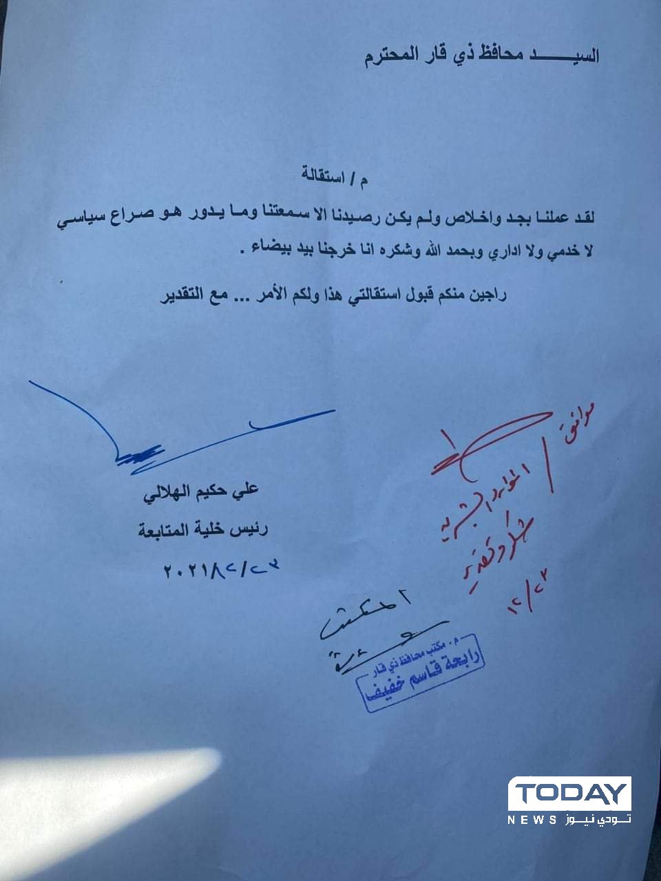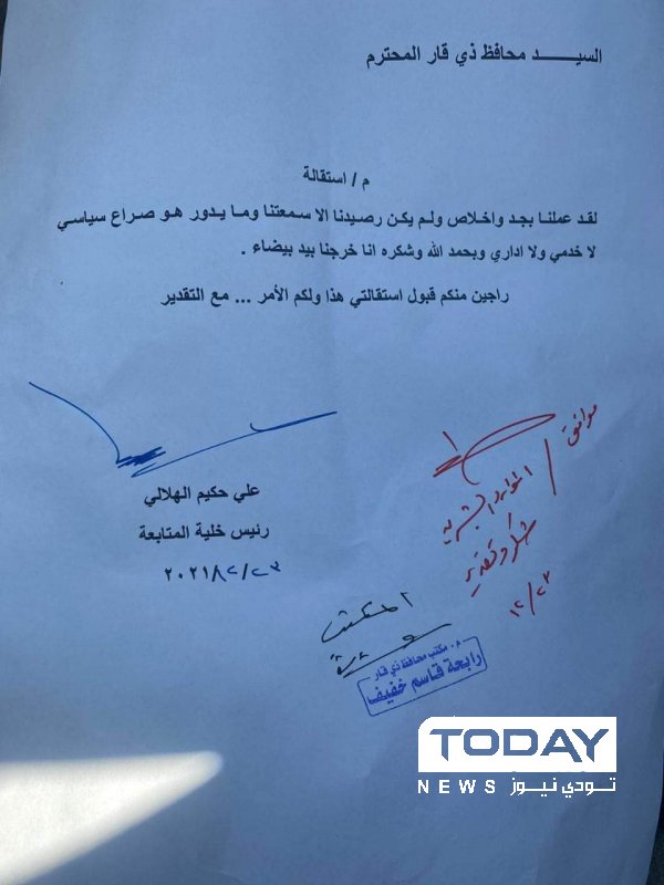 بالوثيقة .. استقالة رئيس خلية المتابعة في ذي قار
