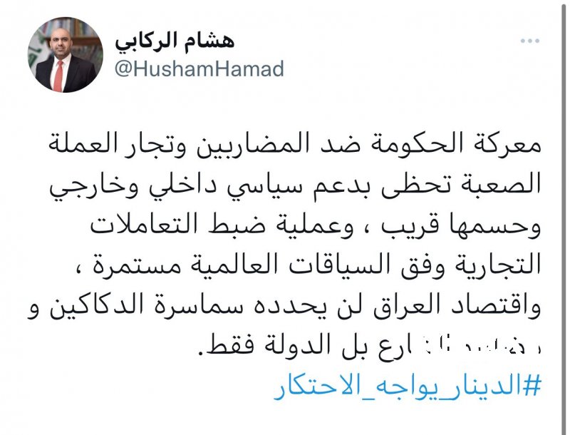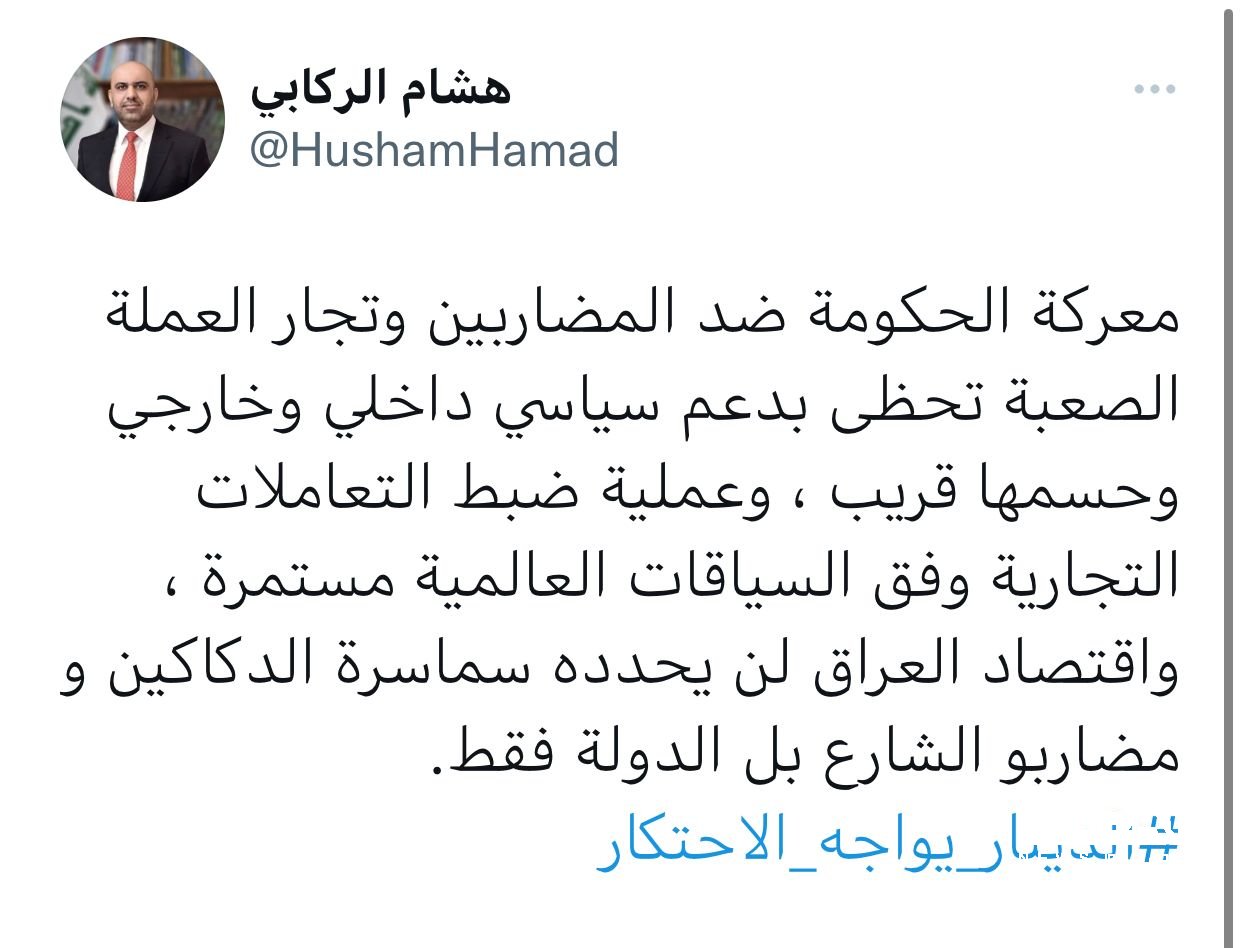 الركابي يغرد بشأن الدولار .. معركة الحكومة ضد المضاربين بالدولار حسمها قريب