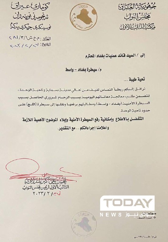 المندلاوي يطالب عمليات بغداد برفع سيطرة بغداد - واسط