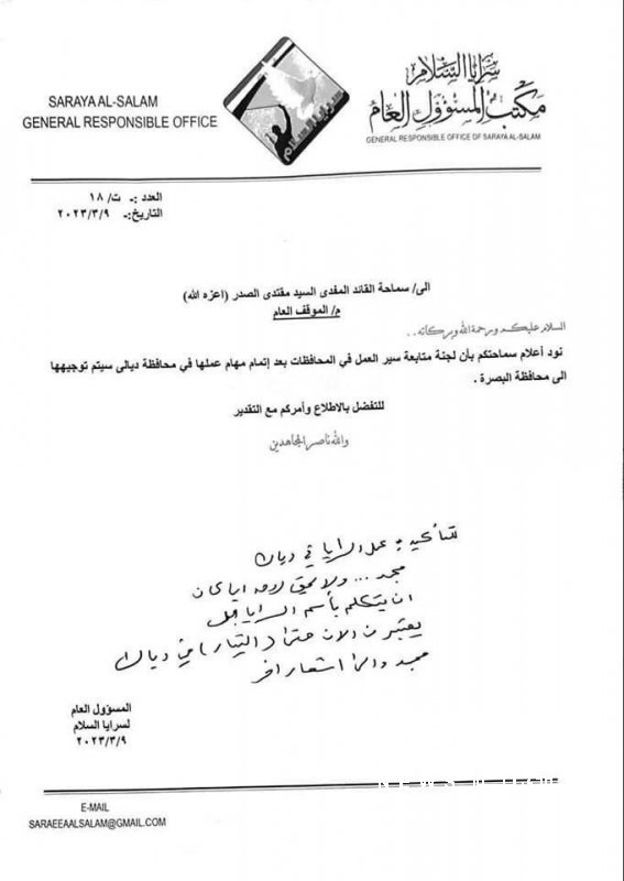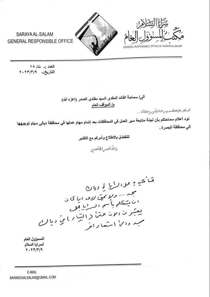 قرر زعيم التيار الصدري مقتدى الصدر، تجميد عمل التيار في محافظة ديالى